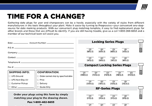 Progressive Components has the widest selection of replacement date rings and plugs anywhere, making us your one-stop source for competitively priced date stamp products worldwide.