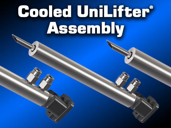 Cooled UniLifter Assemblies include the (1) Core Blade machined to accept all cooling items, (1) High Flow Tube cut-to-length with a 30° angle, and (1) Buna O-Ring.